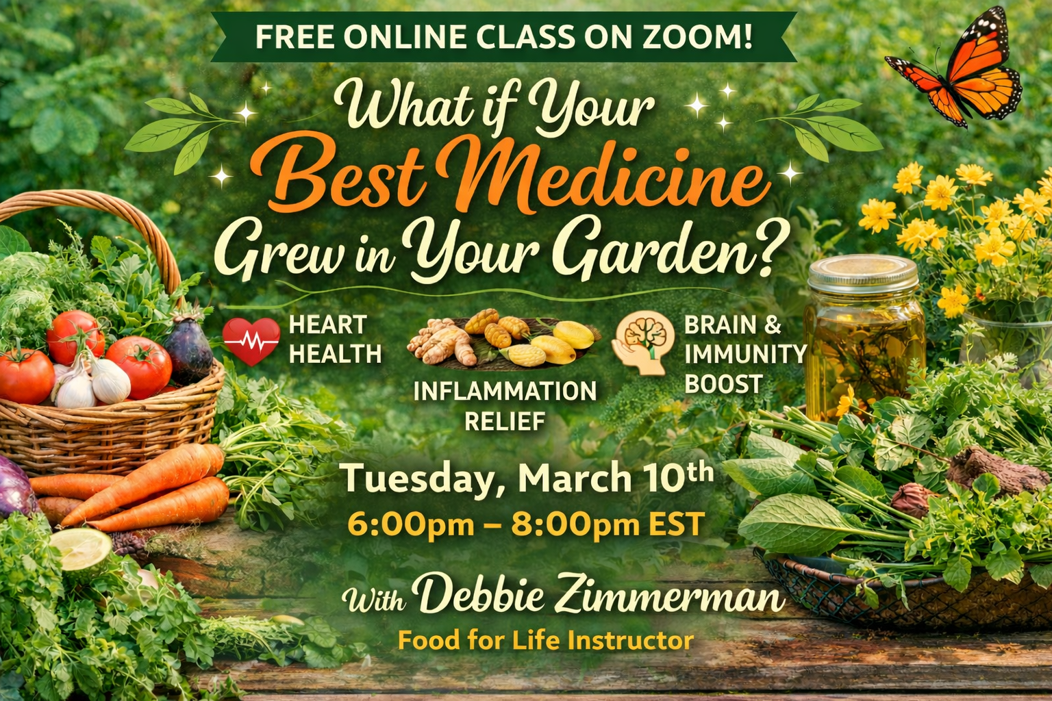 Join Debbie Zimmerman, Food for Life Instructor, for a FREE live Zoom class that explores how whole, plant-based foods can support healing, vitality, and long-term health. Whether those plants come from your backyard, a local farmers market, or the produce aisle, the benefits are the same.